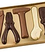 Cool chocoladegereedschap voor de 'echte vakman'. In deze doos bevinden zich een zaag, een tang, een hamer, een baco tang en een schroevendraaier van gemengde chocolade. Lees meer..