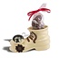 Grappige chocoladeschoen met fotorondje of logo, eveneens van chocola. In de schoen bevindt zich een..